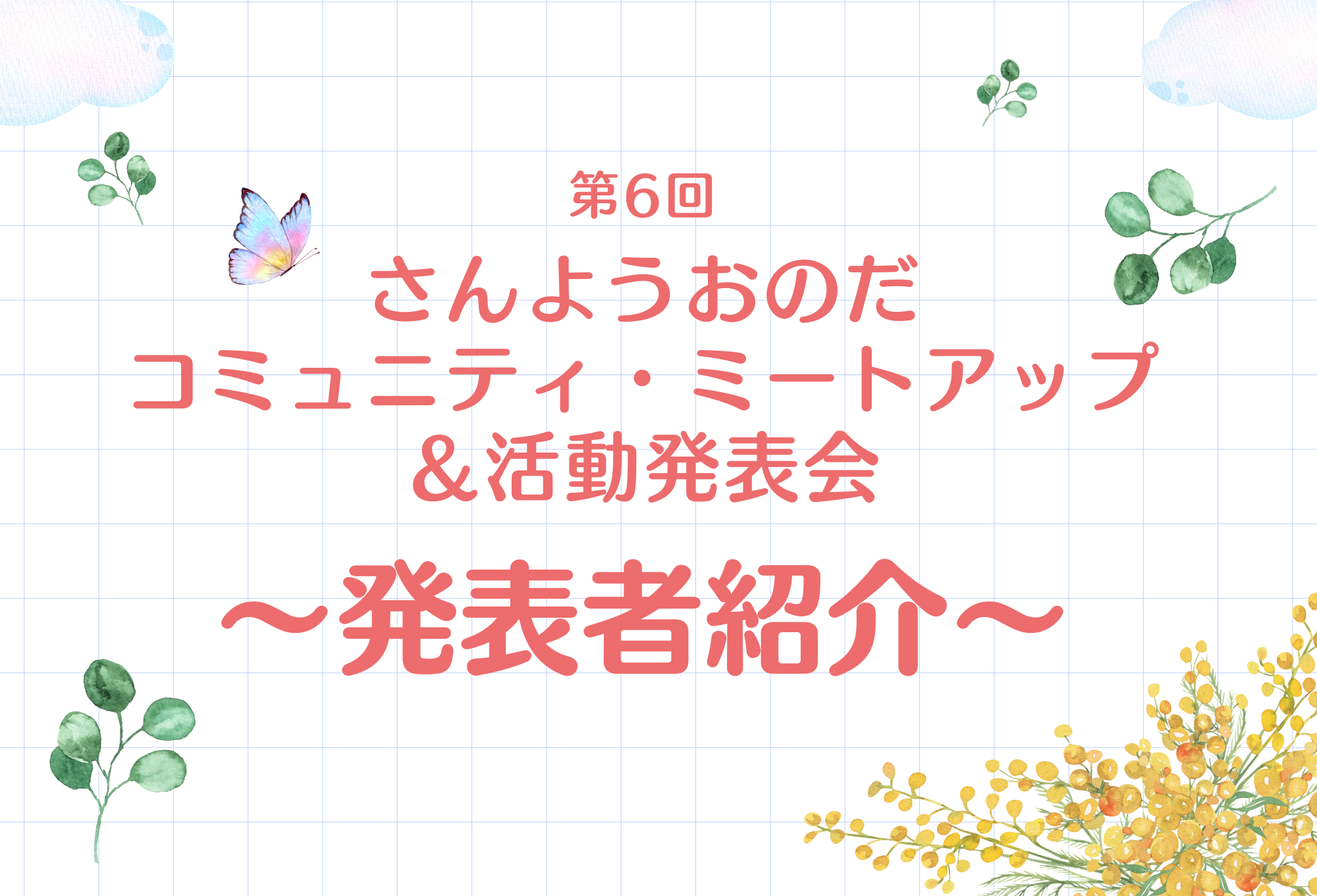 市民活動センター2026年02月10日【発表者紹介!】第6回さんようおのだコミュニティ・ミートアップ&活動発表会詳しく見る -