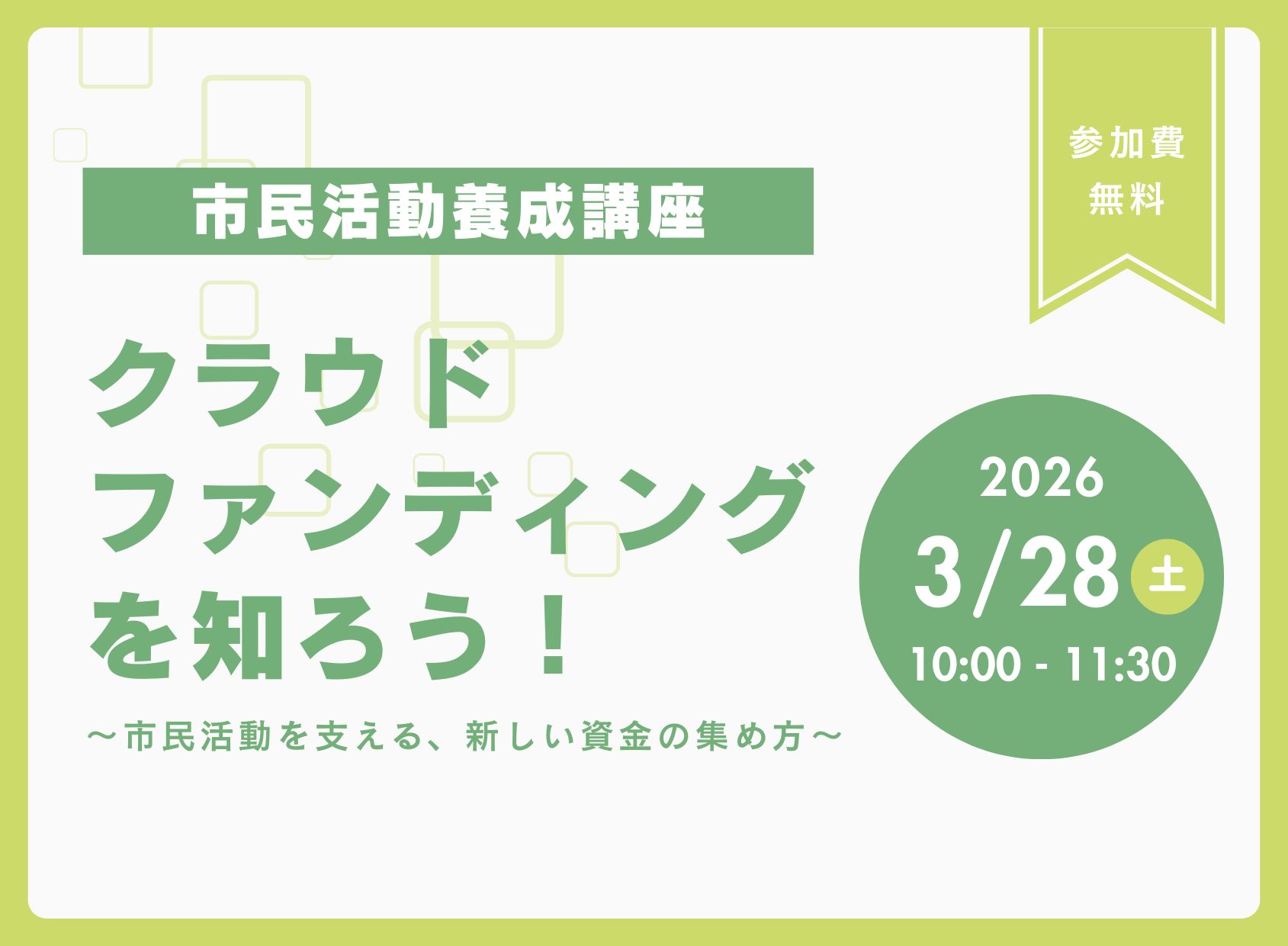 市民活動センター2026年02月21日市民活動養成講座「クラウドファンディングを知ろう!」開催のお知らせ詳しく見る