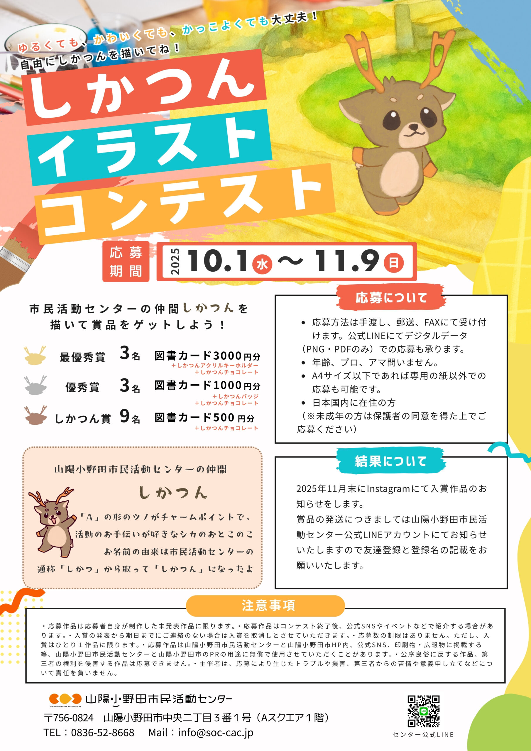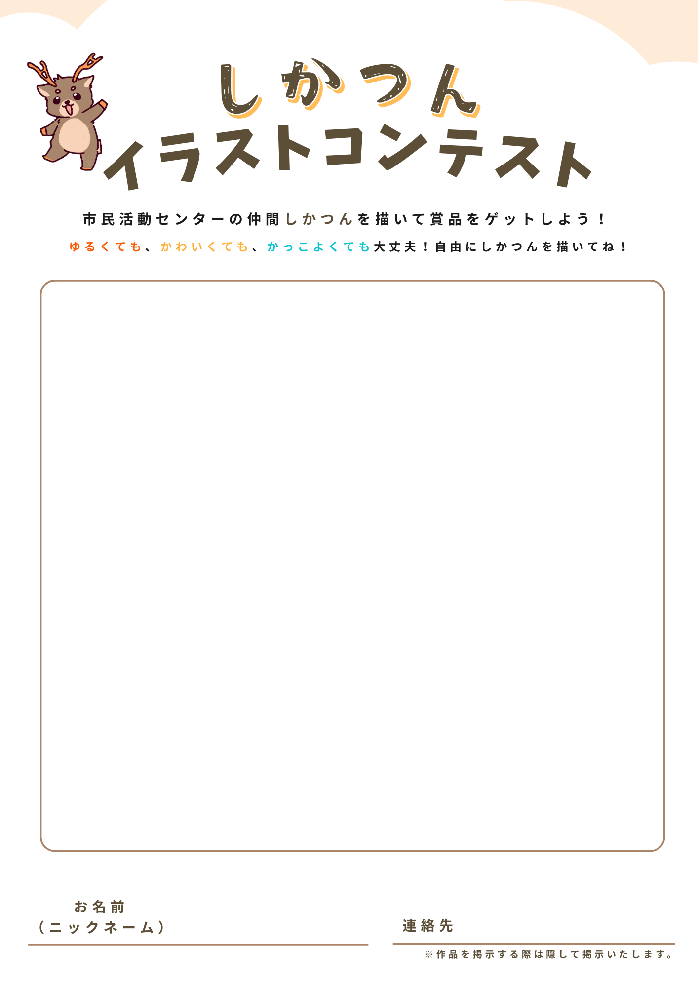 山陽小野田市民活動センターの仲間「しかつん」を描いて賞品をゲットしよう!