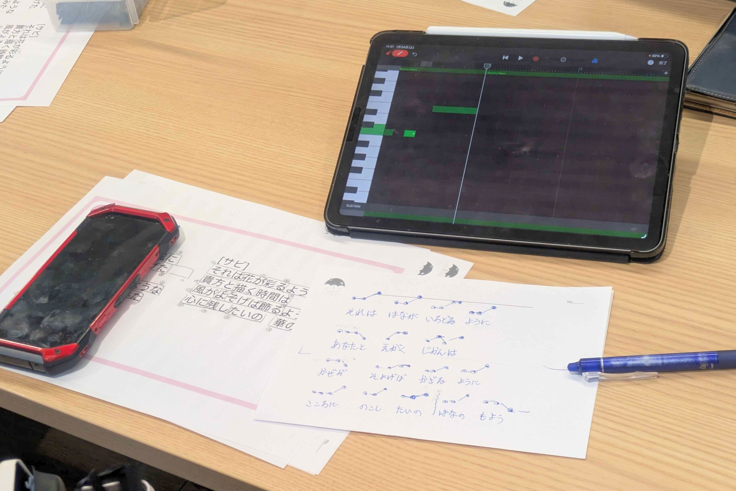 前半はiOS/iPad用アプリ「GarageBand」を使って、基本操作やリズムのコツを学びました。後半では、津田さんが作詞したサンプル歌詞にリズムをつける実践に挑戦!参加者同士でリズムの取り方を相談し合いながら、和やかな雰囲気の中で交流も深まりました。