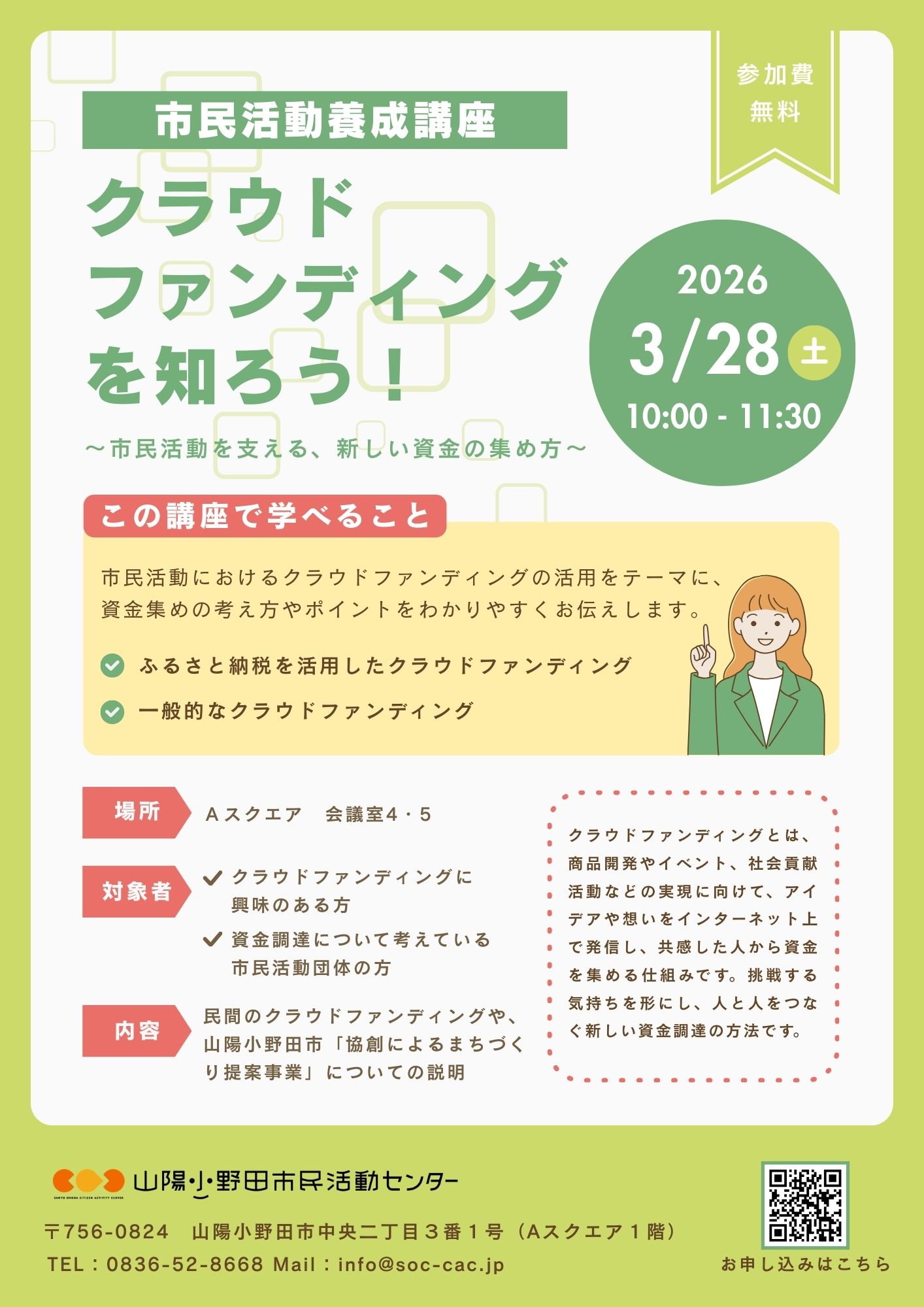 今回の講座では、市民活動におけるクラウドファンディングの活用をテーマに、資金集めの考え方やポイントをわかりやすくお伝えします。