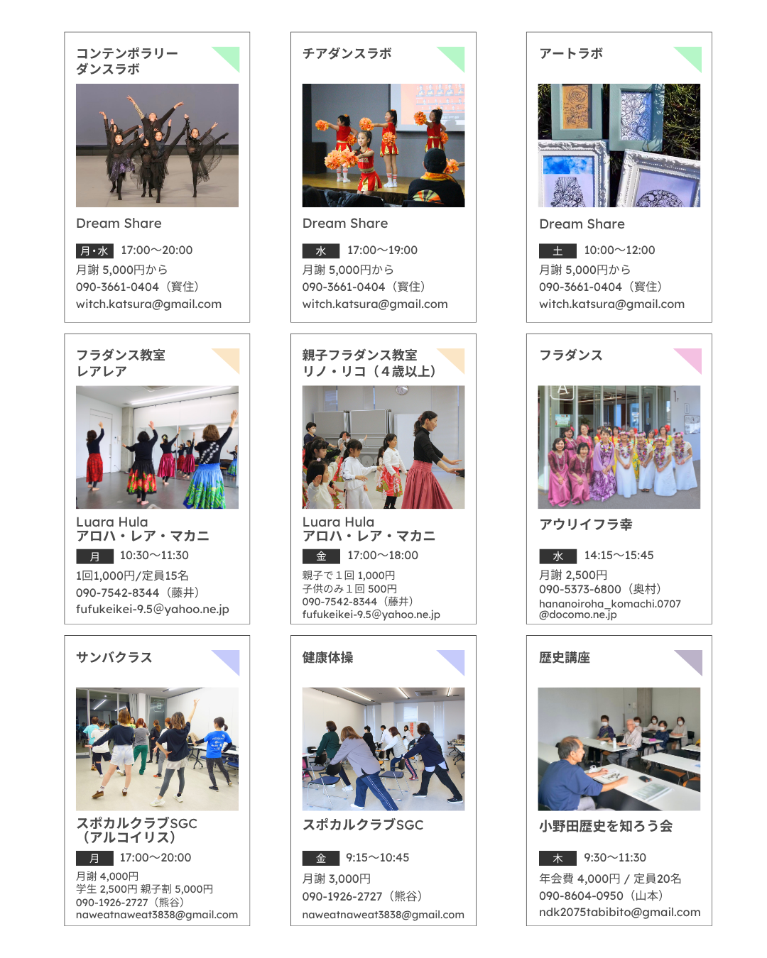入会等に関する詳細は、各教室の担当者までお問合せください。