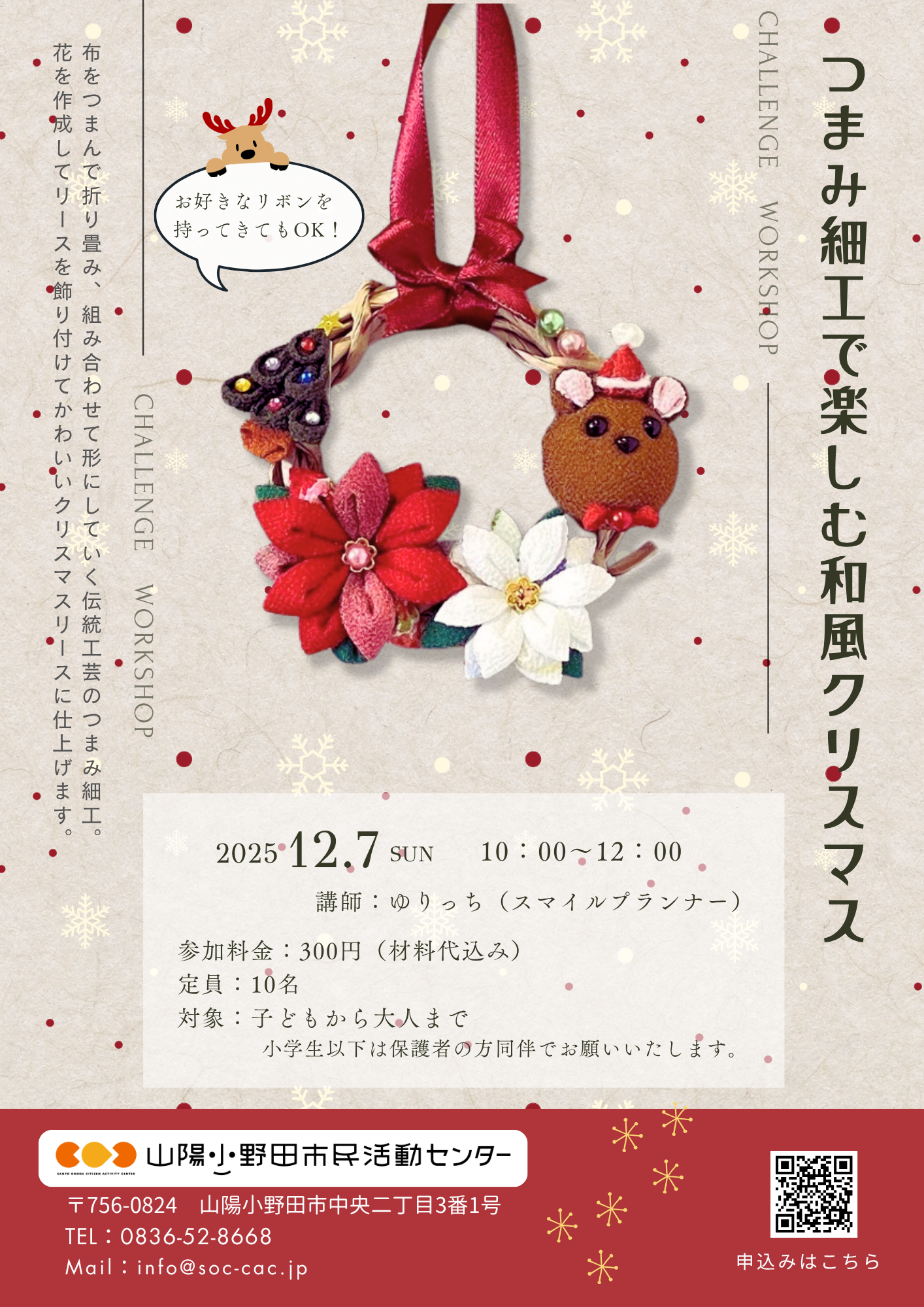 🎄チャレンジワークショップ 「つまみ細工で楽しむ和風クリスマス」を開催します✨